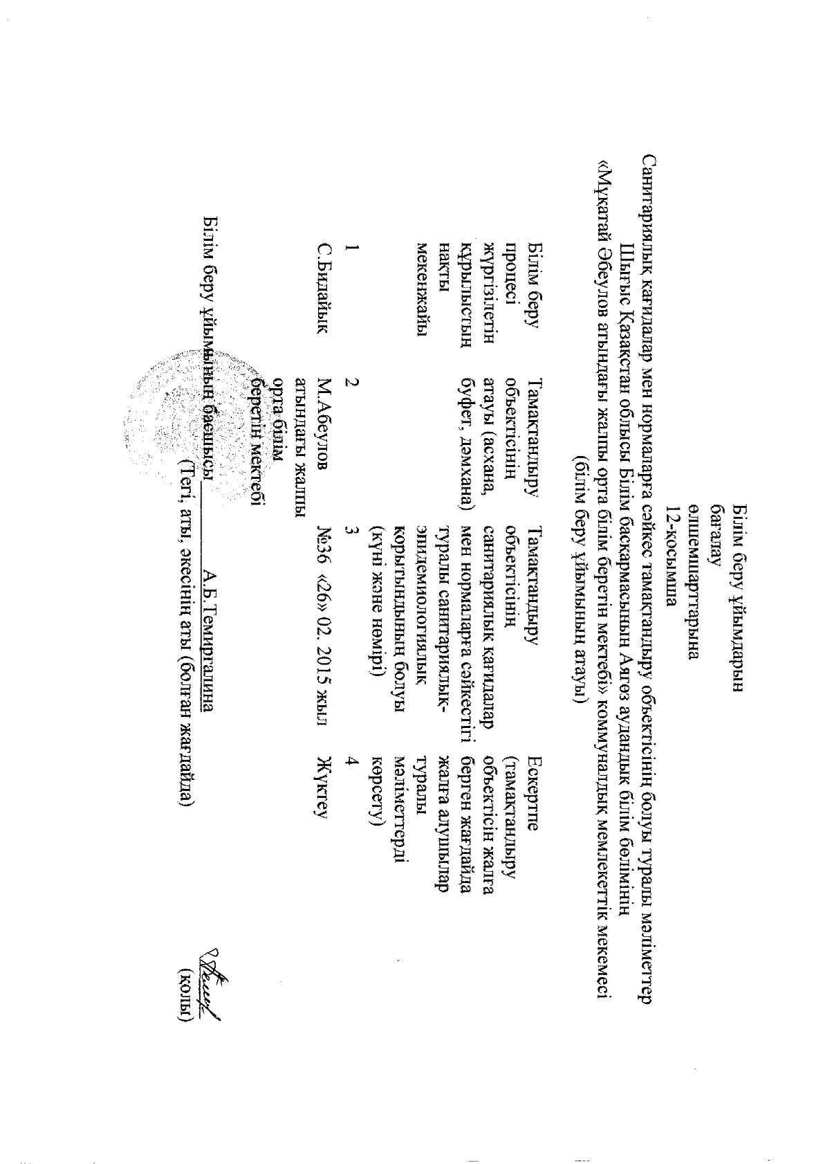Абай облысы білім басқармасының Аягөз ауданы білім бөлімінің «Мұқатай Әбеулов атындағы жалпы орта білім беретін мектебі»